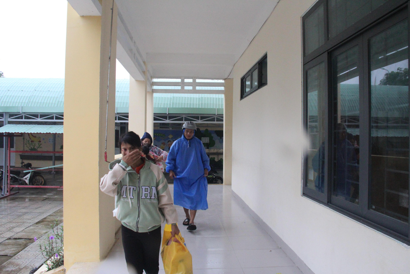 Vừa tan ca làm, trưa 27/9 chị Hồ Thị Son (quê ở xã Trà Dơn, huyện Nam Trà My, Quảng Nam) vội ôm con nhỏ 8 tháng tuổi đi trú bão.