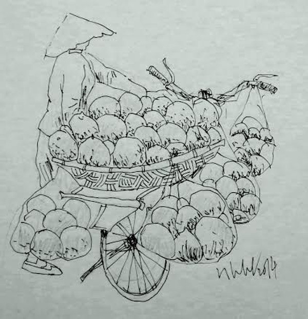 Củ cải trắng to và non chưa tới mười ngàn. Cải ngồng bó to cũng chỉ năm ngàn… Hàng hoa quả thì trừ vài thứ như nho Mỹ, cam canh còn nhấp nhô lên xuống cao thấp một tí, chứ bưởi Diễn to nhỏ từ mười lăm đến hai nhăm ngàn đổ tận sân nhà, mua bao nhiêu cũng được. Khắp nẻo đường phố, xe đạp rong chở bưởi giữ héo, chũm bôi vôi đi xuôi về ngược.