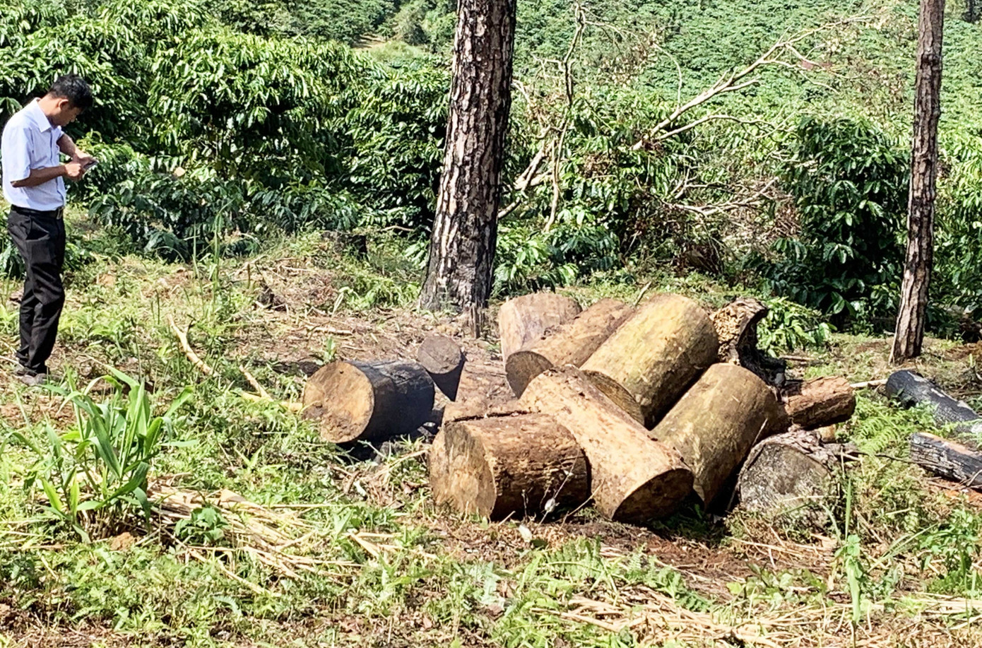 Trên mặt đất, cây thông đổ nằm ngổn ngang. Nơi nào cây ngã xuống thì cây cà phê nhanh chóng được “cấy” vào. Người ta chọn những cây giống “già” hoặc bứng những cây cà phê trưởng thành từ nơi khác đưa vào trồng trên đất rừng để trông như vườn cà phê đã vài năm tuổi. Bởi vì theo quy định thì những vườn cà phê nhiều năm tuổi sẽ không bị giải tỏa trắng.