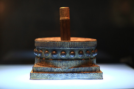 Đài thờ Uroja-Linga trang trí hoa sen, chất liệu bạc mạ vàng thuộc văn hóa Chămpa được phát hiện vào thế kỷ XI-XII.