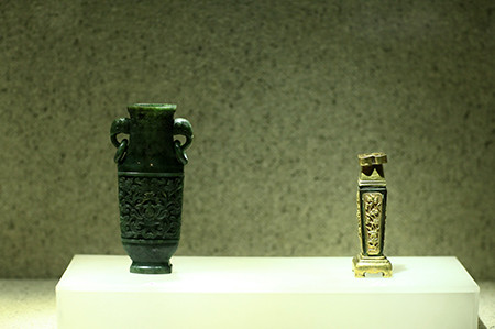 Chậu bằng vàng từ thế kỷ XIX - XX, hộp trang trí nổi cánh sen bằng vàng, kiếm trang trí hoa sen cách điệu được làm bằng ngọc, vàng và đồi mồi có từ thế kỷ XIX - XX…