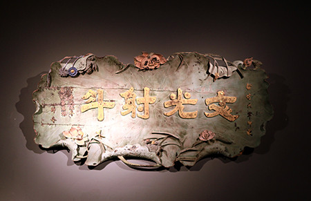Đại tự “Văn quang xạ đầu” được làm từ gỗ sơn thếp, thời Nguyễn, niên hiệu Khải Định thứ 6 (1920)