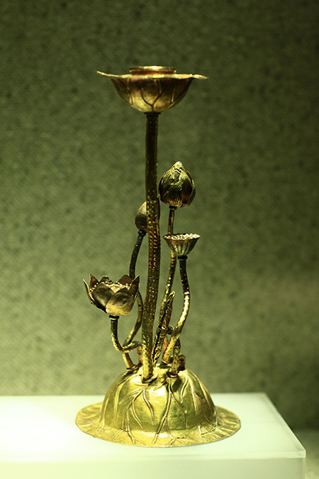 Chân nến hình khóm sen, thuộc bộ sưu tập hiện vật Cung đình Triều Nguyễn.