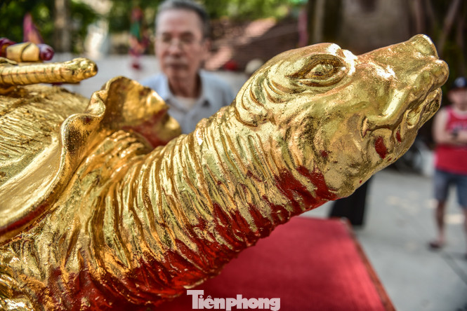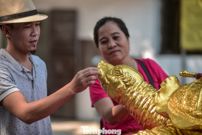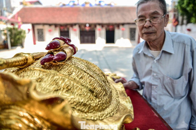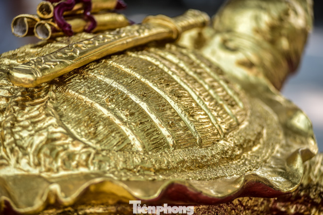 Anh Dương cho biết thêm, tác phẩm được anh kết hợp với những nghệ nhân giỏi ở Đồng Kỵ (Bắc Ninh) về mạ vàng, làm trong trong khoảng hơn 2 tháng mới hoàn thiện.