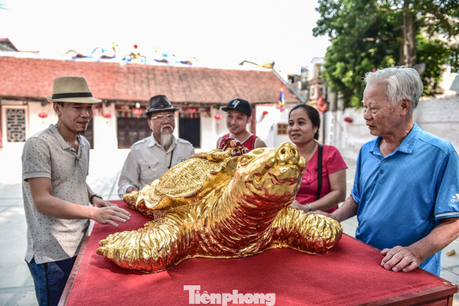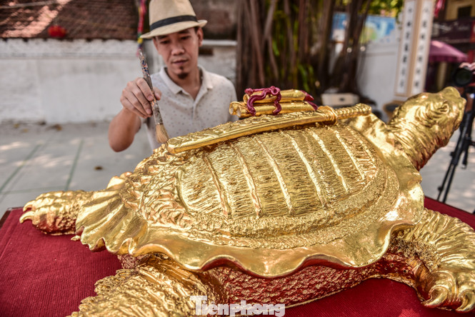 Gần đây, người dân Thủ đô xôn xao bởi tác phẩm rùa bằng gốm mạ vàng 9999 phỏng theo tiêu bản cụ rùa Hồ Gươm tại làng nghề gốm Bát Tràng .