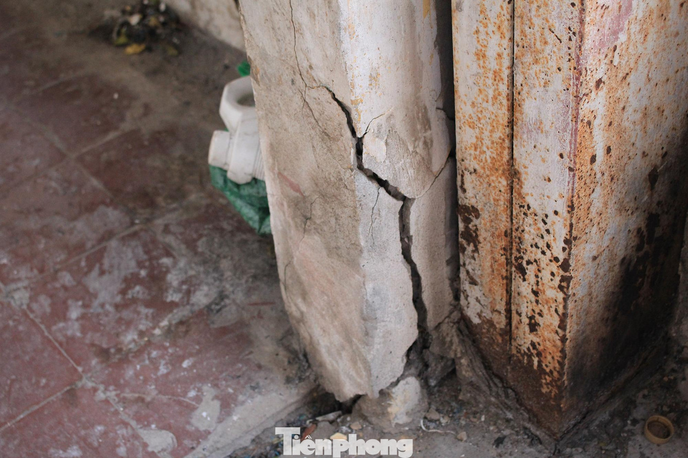 | Những hộ dân còn trụ lại ở nhà A tập thể Ngọc Khánh cho biết họ đang sống trong nơm nớp lo sợ vì nhận thấy từ lâu tòa nhà đã xuống cấp nghiêm trọng khi các mảng tường đều nứt vỡ, ngấm nước, bong tróc nặng; phần cót ép trần đã mục nát, rơi vỡ trong khi các cột nhà lộ rõ lõi sắt han gỉ. |