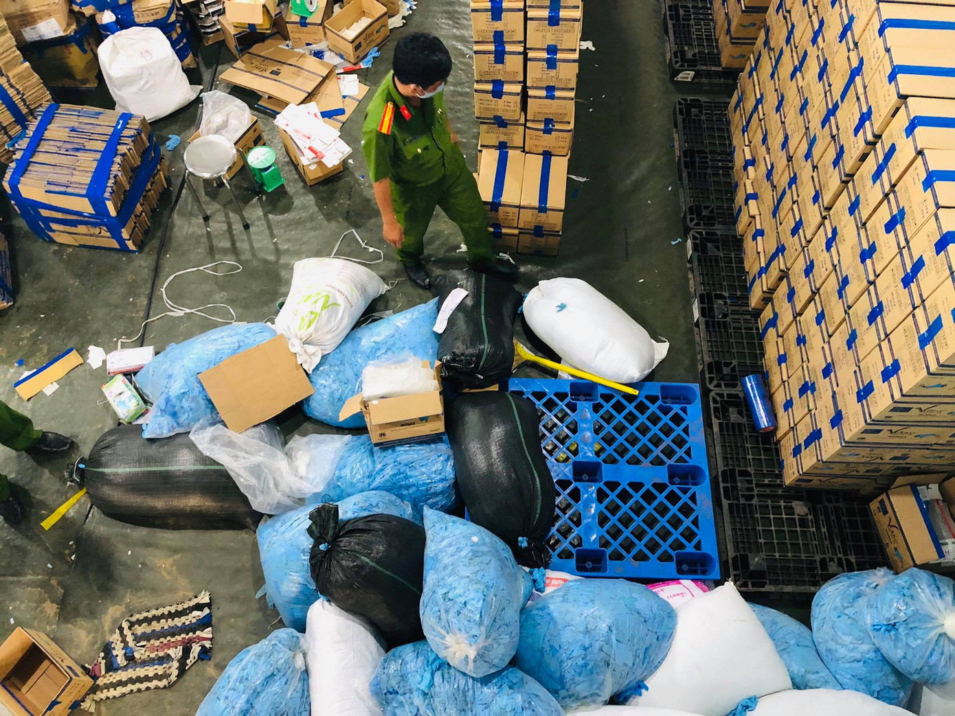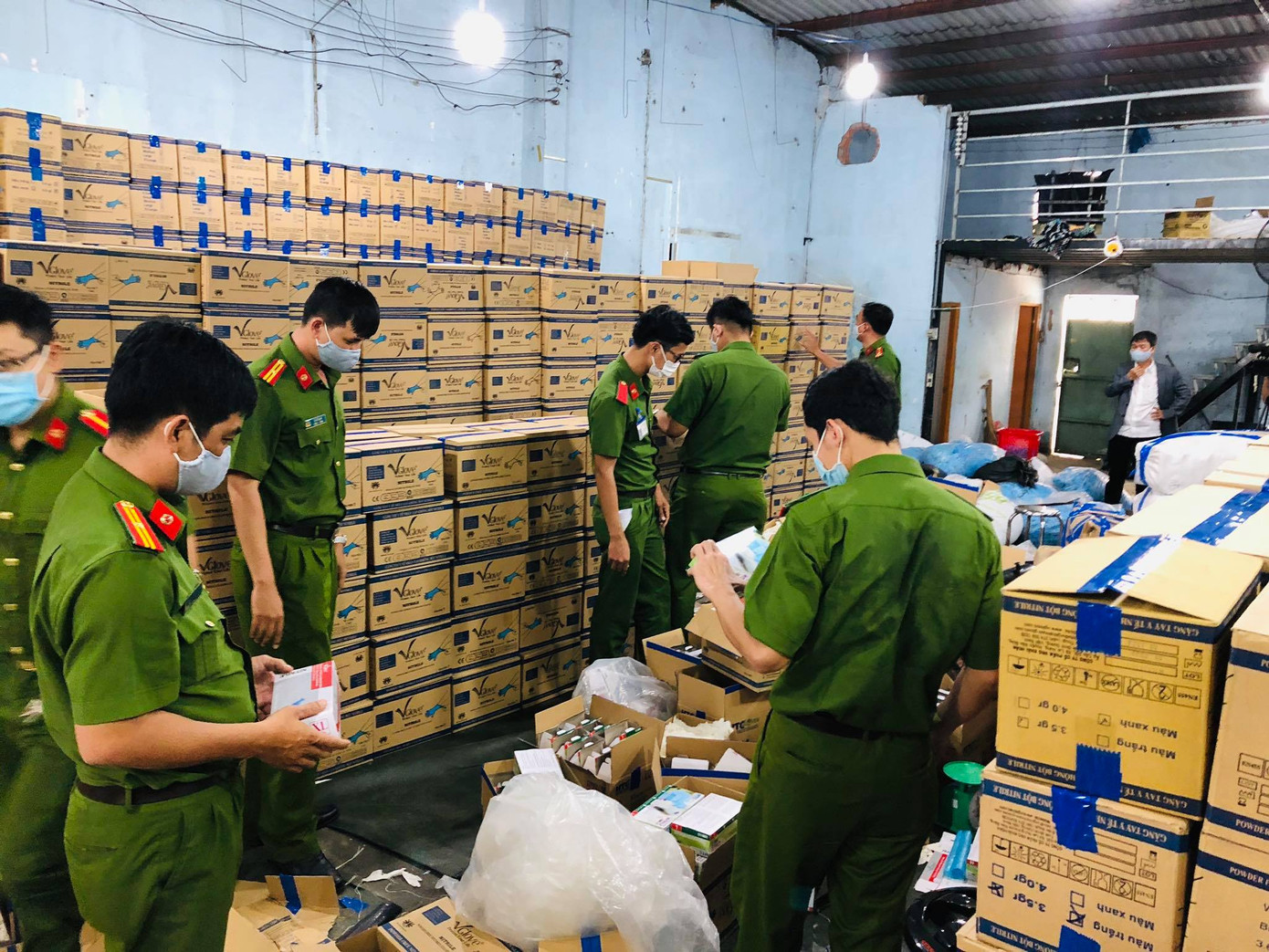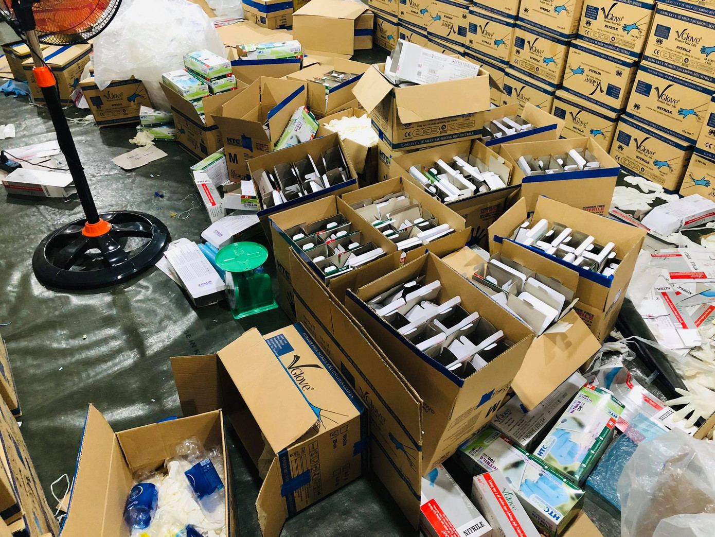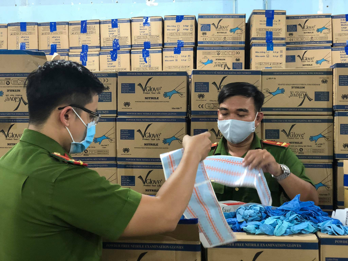 Tiến hành kiểm tra căn nhà số 951/22 đường Hương Lộ 2, phường Bình Trị Đông A, quận Bình Tân, Phòng Cảnh sát kinh tế phối hợp với lực lượng An ninh - Bộ Công an phát hiện có 32 công nhân đang sàng lọc, đóng thùng găng tay từ bao tải lớn vào từng hộp, thùng có nhãn mác giả danh các công ty có thương hiệu nổi tiếng về găng tay y tế.