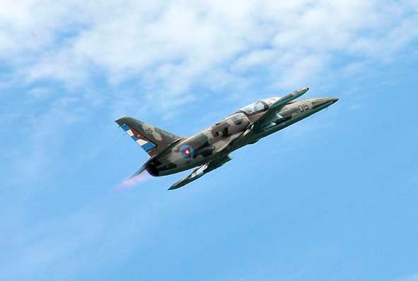 Phi công đốt tăng lực đưa chiếc L-39 lao lên bầu trời.
