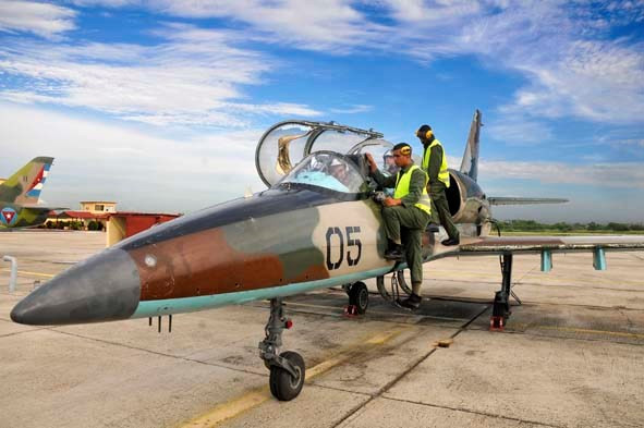 Trong ảnh, phi công Cuba chuẩn bị bài bay huấn luyện trên máy bay phản lực L-39.