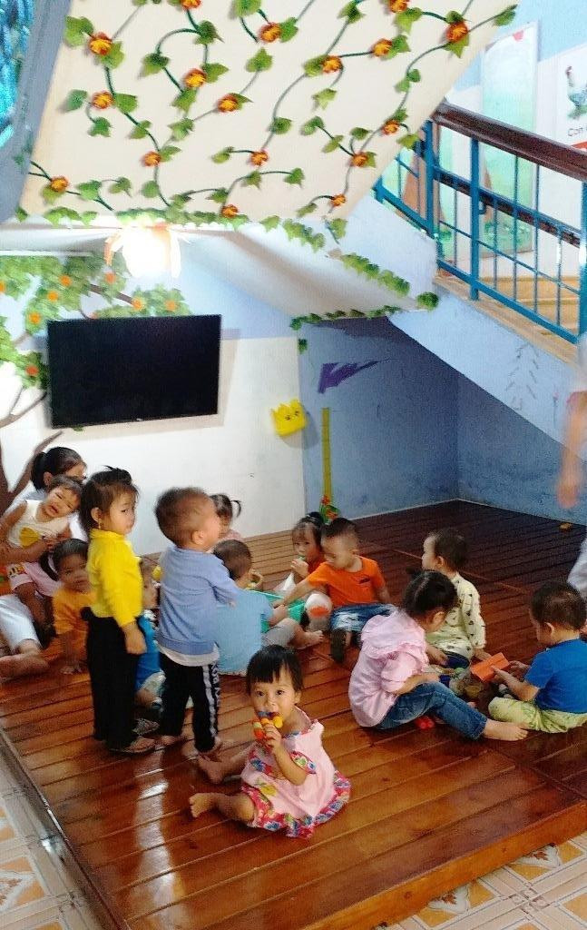 Do thiếu ánh sáng, chật chội, trẻ hay quấy khóc khi học ở gầm cầu thang, nên 11 cháu bé này thường xuyên được các cô giáo đưa ra sân để dạy dỗ và tổ chức vui chơi trong giờ học.