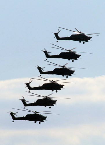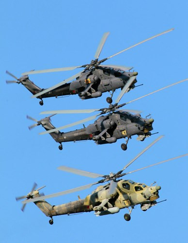 Mi-28N Night Hunter dàn hàng đẹp mắt trên bầu trời.
