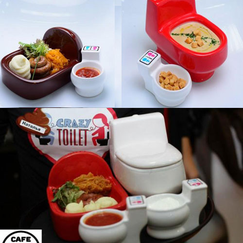 Bệ xí, bồn rửa mặt tí hon được dùng để đựng thức ăn