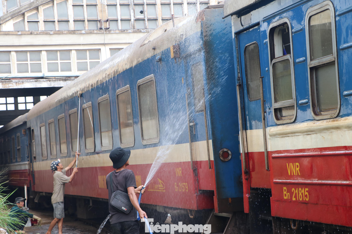 Không chỉ phun thuốc khử trùng, việc lau rửa các đoàn tàu để đảm bảo vệ sinh cũng thường xuyên được thực hiện.