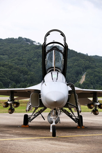 Phát biểu tại buổi lễ ở căn cứ không quân Wonju hôm 30/10/2014, Tổng thống Hàn Quốc Park Geun-hye đã ca ngợi việc triển khai máy bay chiến đấu mới FA-50, đồng thời kêu gọi lực lượng quân đội nỗ lực hơn nữa để nâng cao khả năng chiến đấu. Trong ảnh, một tiêm kích FA-50 thả bom.