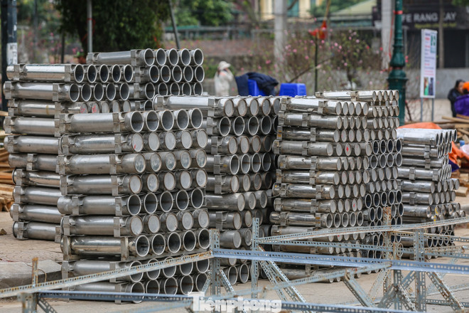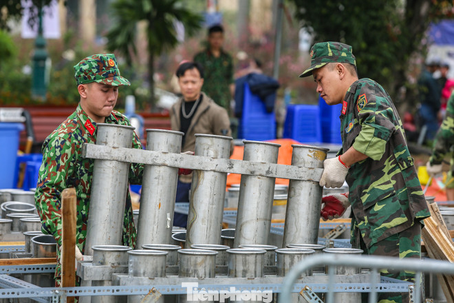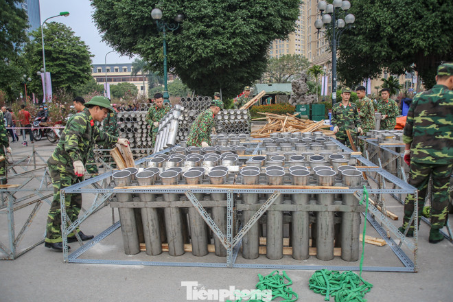 Vào sáng nay, ngày 29 tháng Chạp Âm lịch, trận địa pháo bắt đầu được lắp đặt tại các địa điểm bắn pháo hoa ở Hà Nội.