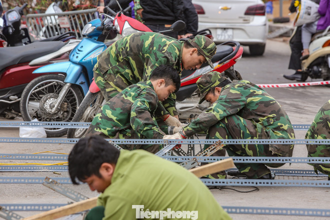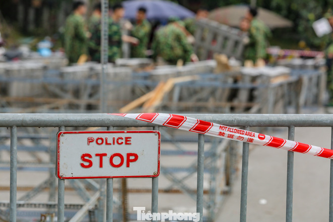 Trận địa pháo tại vườn hoa Lạc Long Quân đang được dựng lên.