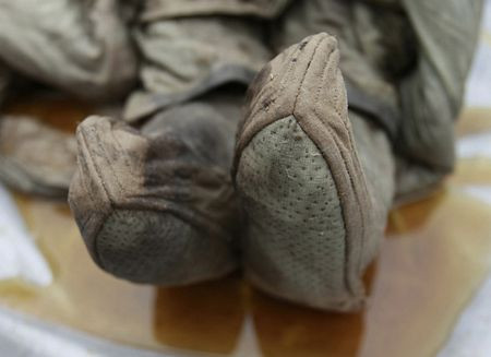 Tuy nhiên, điều nhóm khảo cổ thực sự kinh ngạc là ở quan tài thứ ba, bên trong là xác một người phụ nữ với cơ thể gần như nguyên vẹn. Thi thể người phụ nữ được bọc bởi nhiều lớp vải và chăn - tất cả ngâm trong một dung dịch màu nâu.