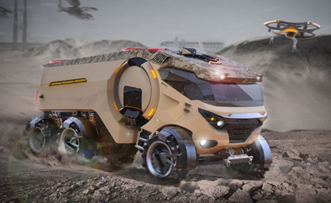 Động cơ xe hoạt động bằng điện hoặc có thể chạy bằng dầu diesel. Thân xe được cấu tạo bởi vật liệu Kevlar sợi carbon có thể cách nhiệt.