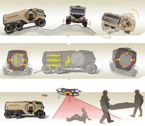Đây là một mẫu thiết kế xe cứu thương quân sự hiện đại nhất thế giới. Nó được thiết kế đặc biệt để có thể vận chuyên và chữa trị cho bệnh nhân ngay trong chiến trường. Thiết kế đầu xe và thân xe có thể gập được giúp chiếc xe cứu thương này có thể di chuyển dưới mọi điều kiện địa hình.