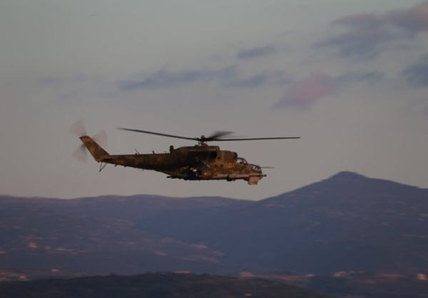 Loạt ảnh cho thấy các trực thăng tấn công Mi-24 bay ở độ cao cực thấp quần đảo nhiều lần để săn lùng mục tiêu phiến quân ở tỉnh Latakia, Syria.