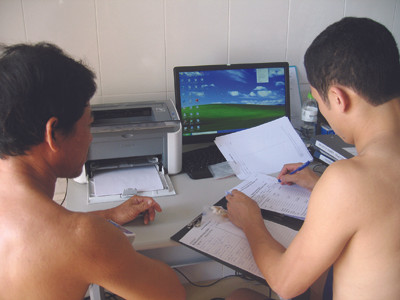 Thi thoảng lại thấy vài bệnh nhân ra khỏi phòng xông hơi xả nước lạnh vì không ngồi lâu được trong phòng nhiệt độ cao. Xả xong, lại quay vào xông tiếp. Cứ như vậy cho đủ 4 đến 4,5 tiếng.