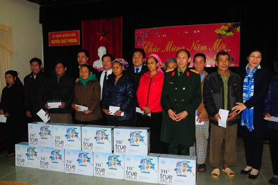 Dịp Tết Bính Thân 2016, công ty CPTP Sữa TH và Ngân hàng Bắc Á qua nhịp cầu báo Tiền Phong hỗ trợ người dân Nghệ An 450 suất quà, gồm 135 triệu đồng và 450 thùng sữa TH.