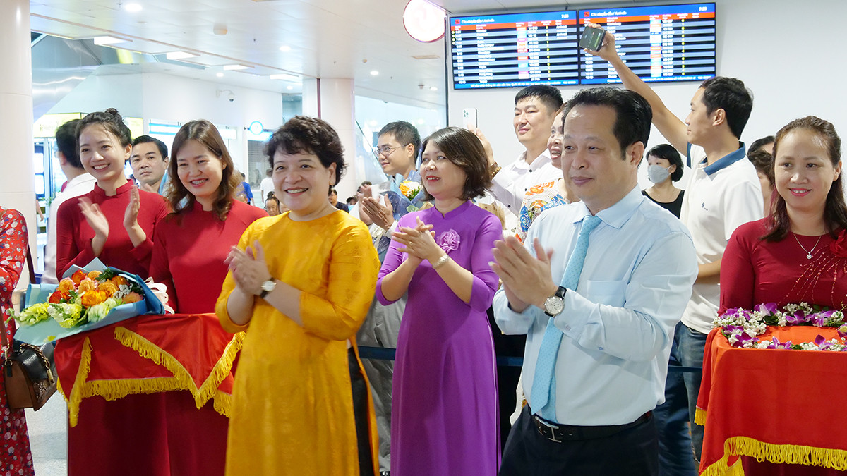 Đón đoàn tại sân bay có Giám đốc Sở GD&ĐT Hà Nội Trần Thế Cương, Ban Giám hiệu và thầy cô, học sinh Trường THPT Chuyên Hà Nội Amsterdam.