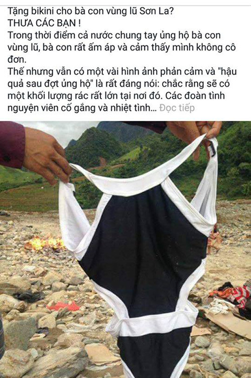 Giống như hình ảnh chiếc bikini thời trang gợi cảm, được chụp tại địa điểm được cho là nơi người dân nhận hàng cứu trợ tại Sơn La gây xôn xao mạng xã hội hai ngày gần đây.
