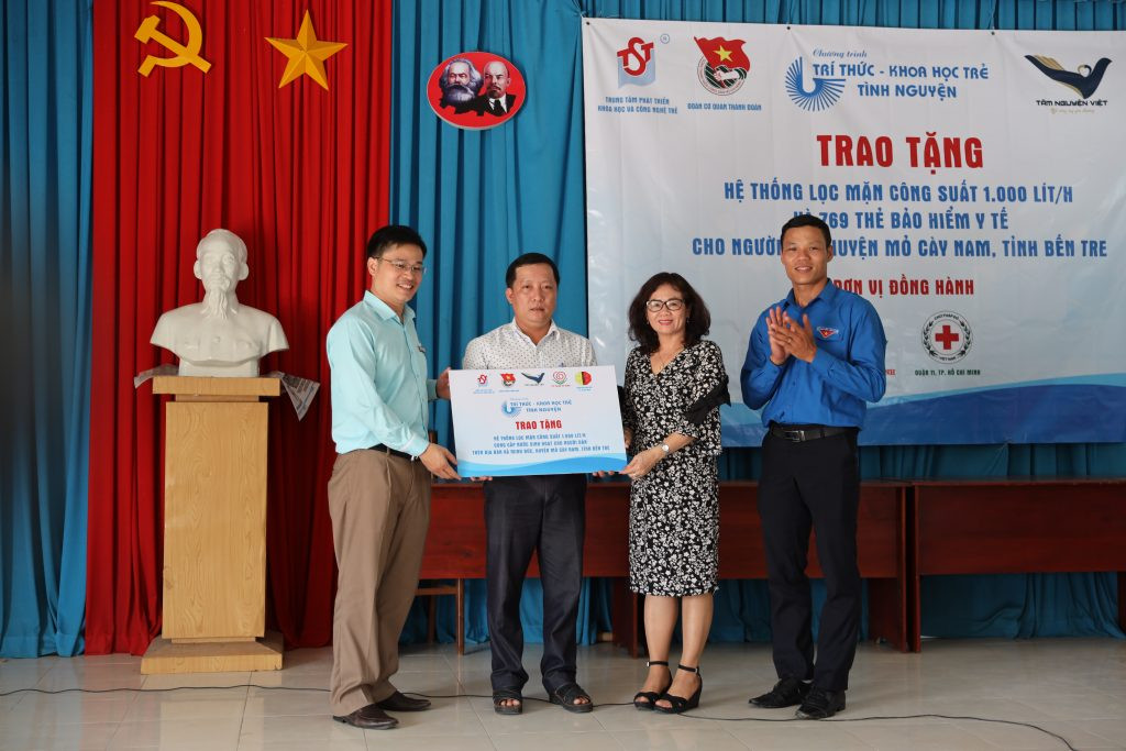 Hệ thống máy lọc mặn được lắp đặt tại Ấp 5, xã Minh Đức, huyện Mỏ Cày Nam, tỉnh Bến Tre. Cũng trong dịp này, Quỹ Tâm Nguyện Việt đã trao tặng 769 thẻ bảo hiểm Y tế trị giá hơn 123 triệu đồng cho các hộ cận nghèo trên địa bàn huyện Mỏ Cày Nam.