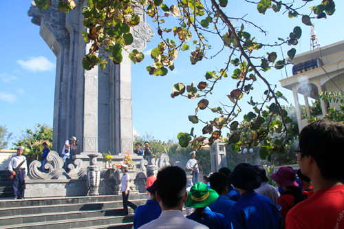 Các đại biểu Hành trình tuổi trẻ vì biển đảo quê hương thắp hương tri ân tại Đài tưởng niệm các anh hùng liệt sỹ trên đảo Trường Sa.