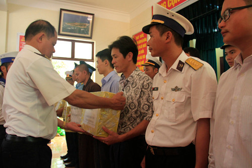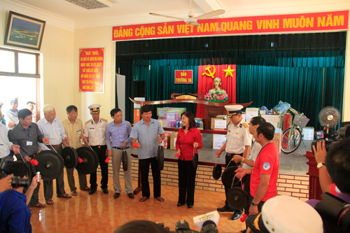 Lãnh đạo Hành trình tuổi trẻ vì biển đảo quê hương 2015 tặng quà