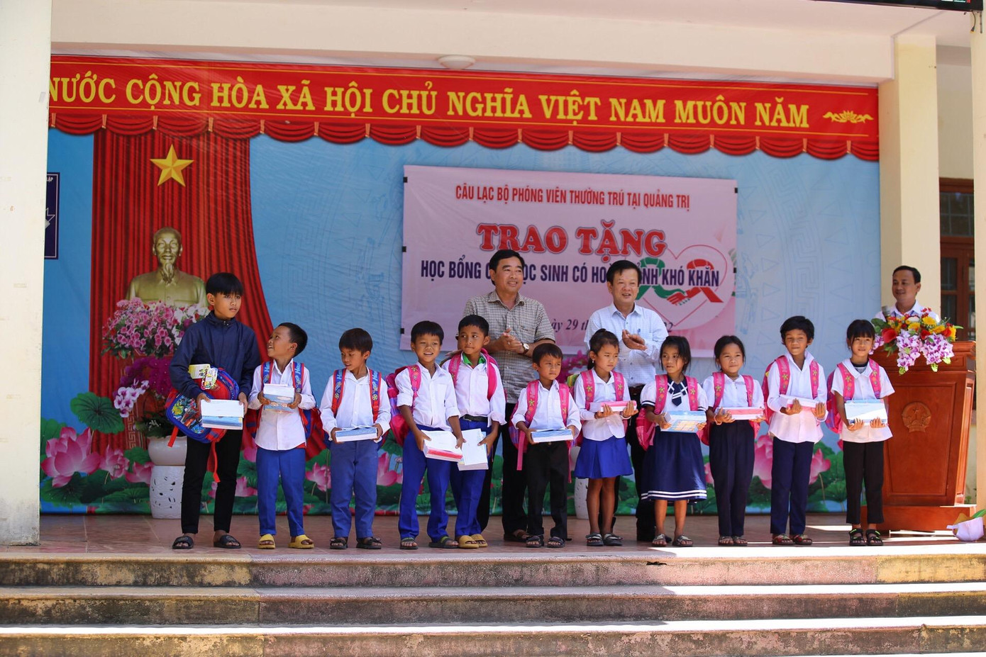 Nhằm động viên các học sinh có hoàn cảnh khó khăn đầu năm học, Sở GD&ĐT phối hợp với CLB phóng viên thường trú tại Quảng Trị trao 50 suất học bổng và quà tặng, gồm: cặp sách, vở đến 50 em học sinh có hoàn cảnh khó khăn tại Trường PTDTBT-Tiểu học và THCS Hướng Lập và học sinh tại điểm trường Trăng – Tà Puồng ở xã Hướng Việt.