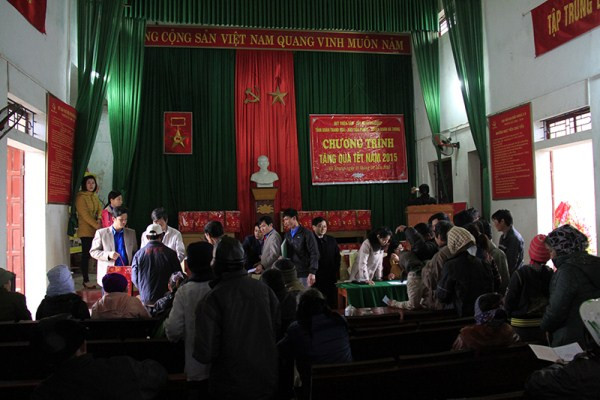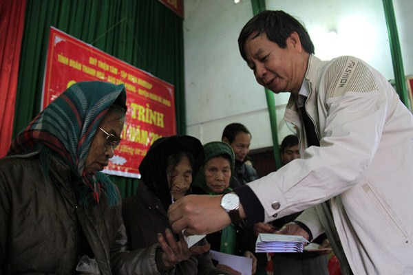 Lãnh đạo Quỹ Thiện tâm, báo Tiền Phong, Tỉnh Đoàn Thanh Hóa, lãnh đạo Huyện Hà Trung trao quà cho các hộ gia đình nghèo, gia đình chính sách.