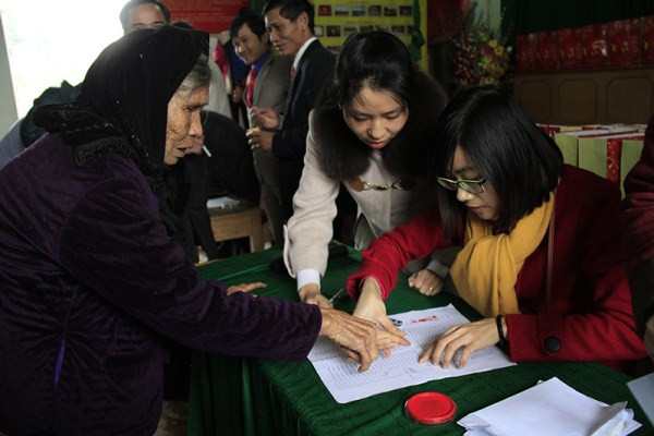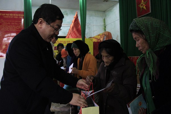 Cũng như ông Đương, bà Lê Thị Tình (77 tuổi) không giấu được vẻ xúc động khi nhận quà Tết. Bà Tình có 2 người con gái, nhưng đều đi lấy chồng xa, có người ở trong miền Nam. Hiện bà ở một mình, đau ốm quanh năm. “Đã 40 năm nay tôi không cấy hái được nữa. Bây giờ con rể, các cháu phải gửi tiền về nuôi. Được tặng quà, tôi thấy được quan tâm, bớt tủi thân. Tôi sẽ mua đồ Tết, đong gạo ăn dần”, bà Tình nói.