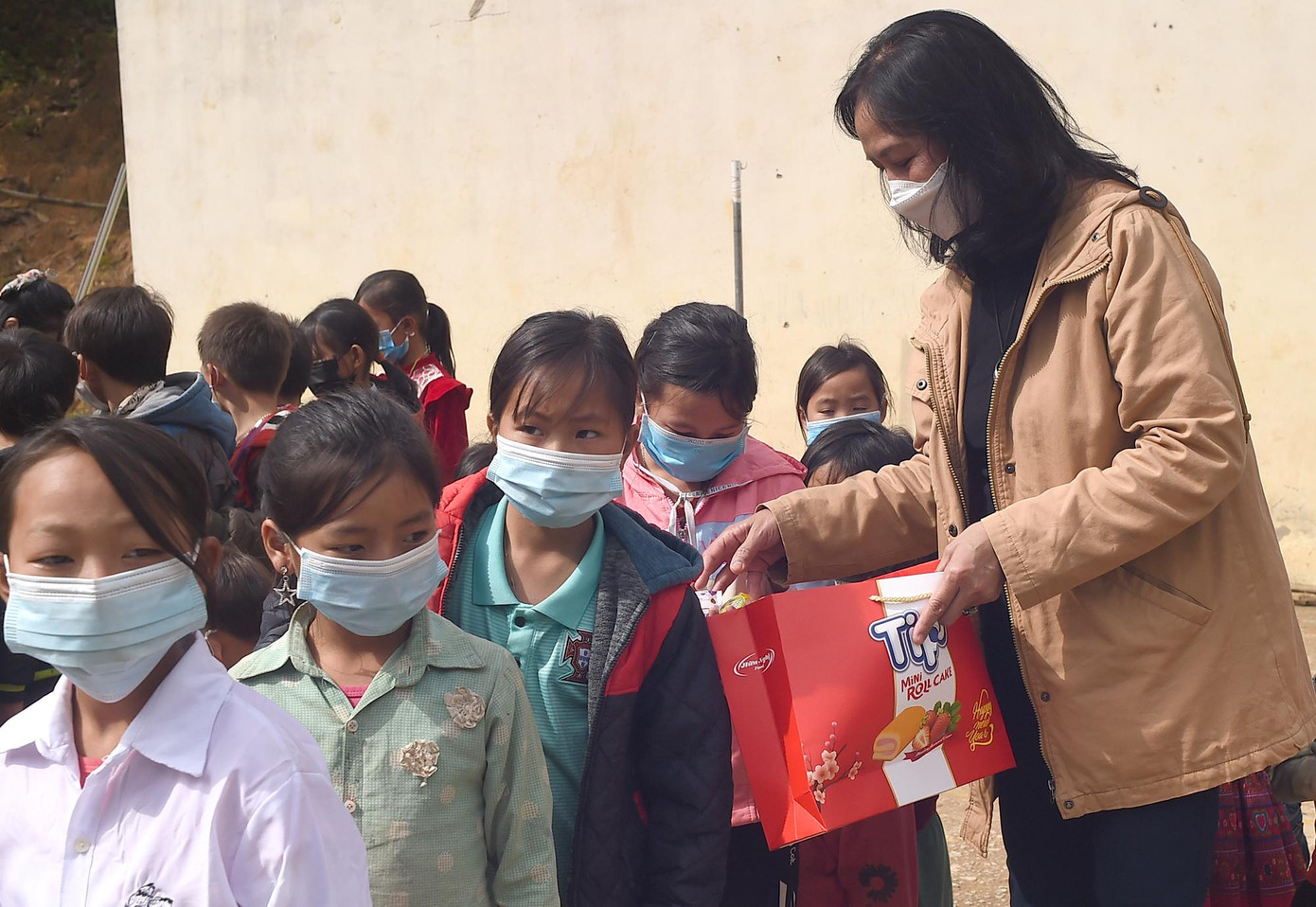 | Bên cạnh những phần quà Tết, đoàn công tác chuẩn bị bánh kẹo tặng các em nhỏ bản Sài Khao. |