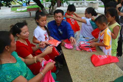 | Quà của công ty TM&DV Hoàng Dương cũng được phóng viên báo Tiền Phong gửi đến tận tay các bậc phụ huynh và cháu nhỏ trên đảo Trường Sa Lớn. |