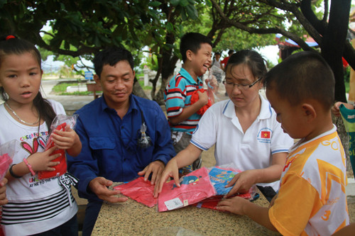 Ngoài ra, các hộ dân, trẻ em trên đảo cũng nhận được thêm nhiều phần quà từ đại biểu của Hành trình Tuổi trẻ vì biển đảo quê hương 2013...