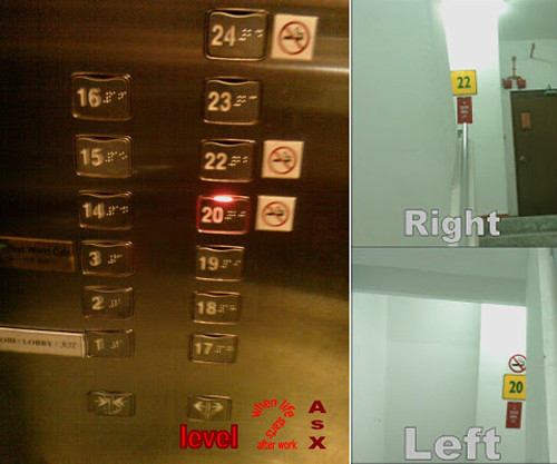 Nhiều hành khách đã thử bấm từng tầng đơn lẻ, tức là bấm từ tầng 19 lên đến tầng 20, sau khi thang mở ra lại bấm lên tầng 22 để so sánh thời gian và phát hiện ra rằng quãng thời gian là như nhau. Vì thế, tầng 21 của tháp 1 không tồn tại. Thậm chí có khách còn đi thang bộ để kiểm chứng và phát hiện ra điều tương tự, sau biển tầng 20 là tầng 22.