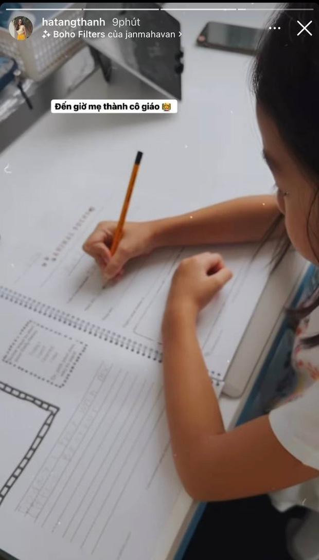 Hà Tăng luôn nhận được sự chú ý của khán giả dù đã "ẩn mình" khỏi V-Biz một thời gian dài. Vào chiều ngày 22/2, cô khiến mọi người cảm thấy thích thú trước hình ảnh hóa thành... "cô giáo" của con gái cưng. Chỉ qua story này, "ngọc nữ" Hà Tăng đã cho thấy sự quan tâm, cưng chiều con gái hết mực.