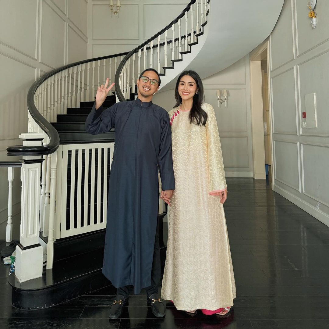 Mới đây, Tăng Thanh Hà đăng tải bức ảnh chụp hai vợ chồng khi dự đám cưới một người họ hàng bên nhà chồng. Nếu như Louis Nguyễn mặc trang phục truyền thống của Philippines thì Hà Tăng lại chọn áo dài Việt Nam. Nhìn cô nhã nhặn nhưng vẫn rất sang trọng trong bộ áo dài dáng suông màu nâu nhạt đi cùng quần lụa màu vàng.