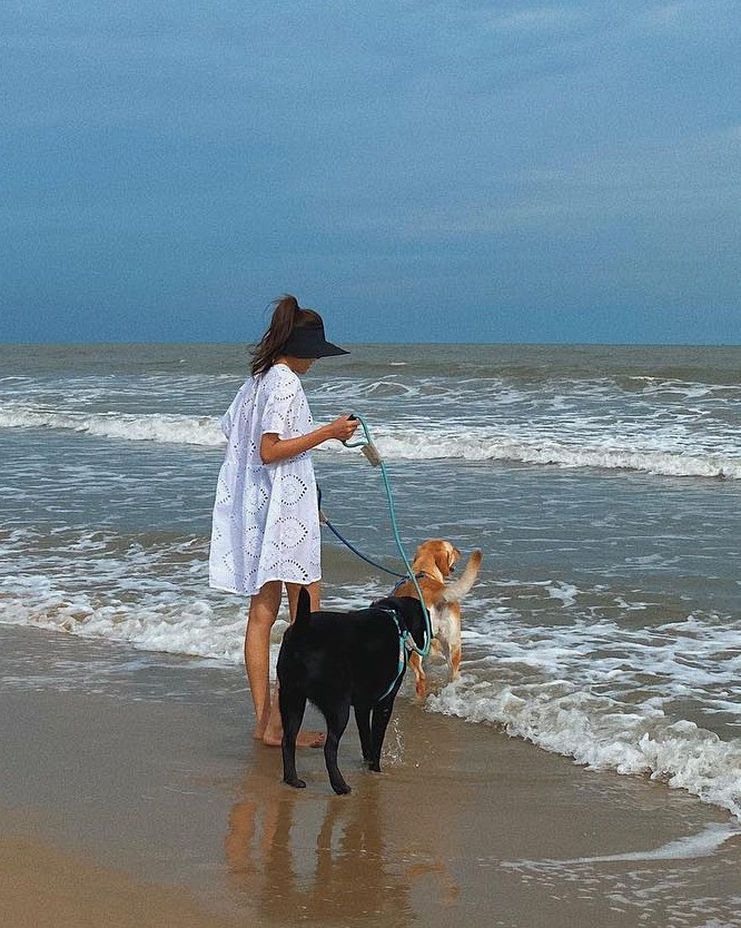 Không chỉ cùng sở thích mặc đồ tắm kín cổng cao tường, hai nàng dâu hào môn đều chọn trang phục giản dị khi đi dạo biển. Như Tăng Thanh Hà sẽ chuộng những mẫu váy babydoll rộng rãi, thoải mái khi thư giãn bên bờ biển.