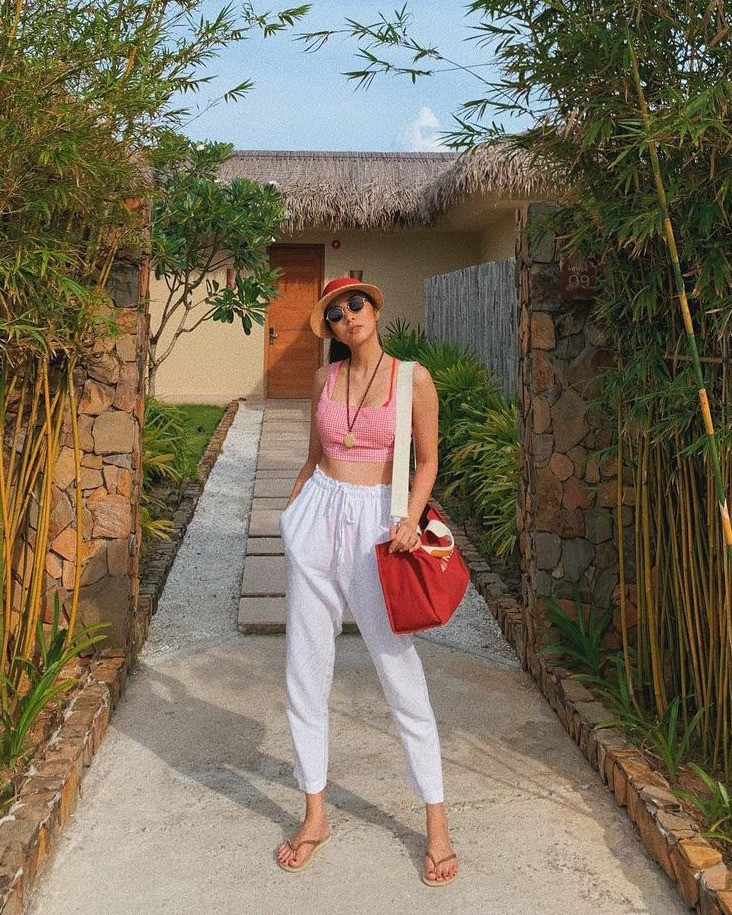 Không cần chọn đồ hở bạo, Hà Tăng vẫn được khen mặc đẹp khi kết hợp áo crop-top với quần baggy, khoe trọn vòng eo nhỏ nhắn như thế này.