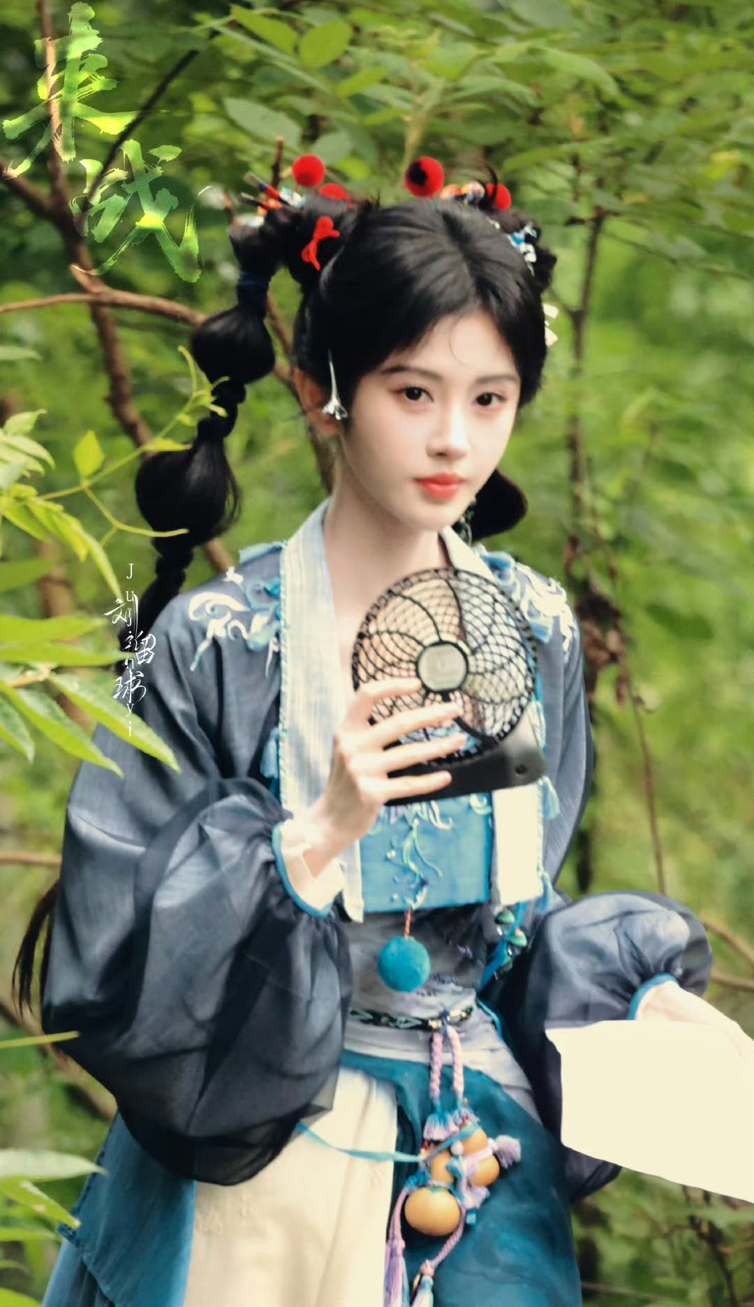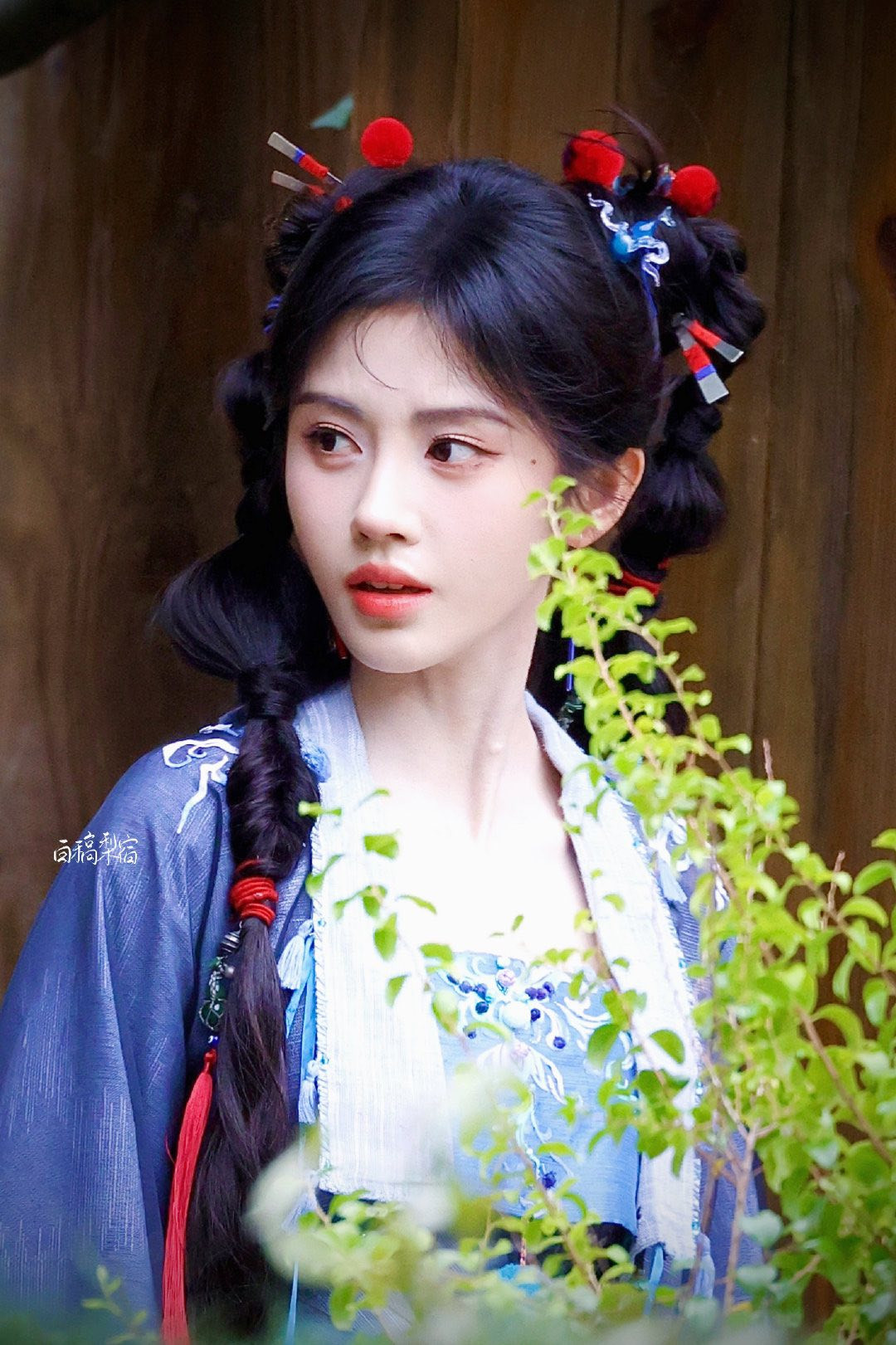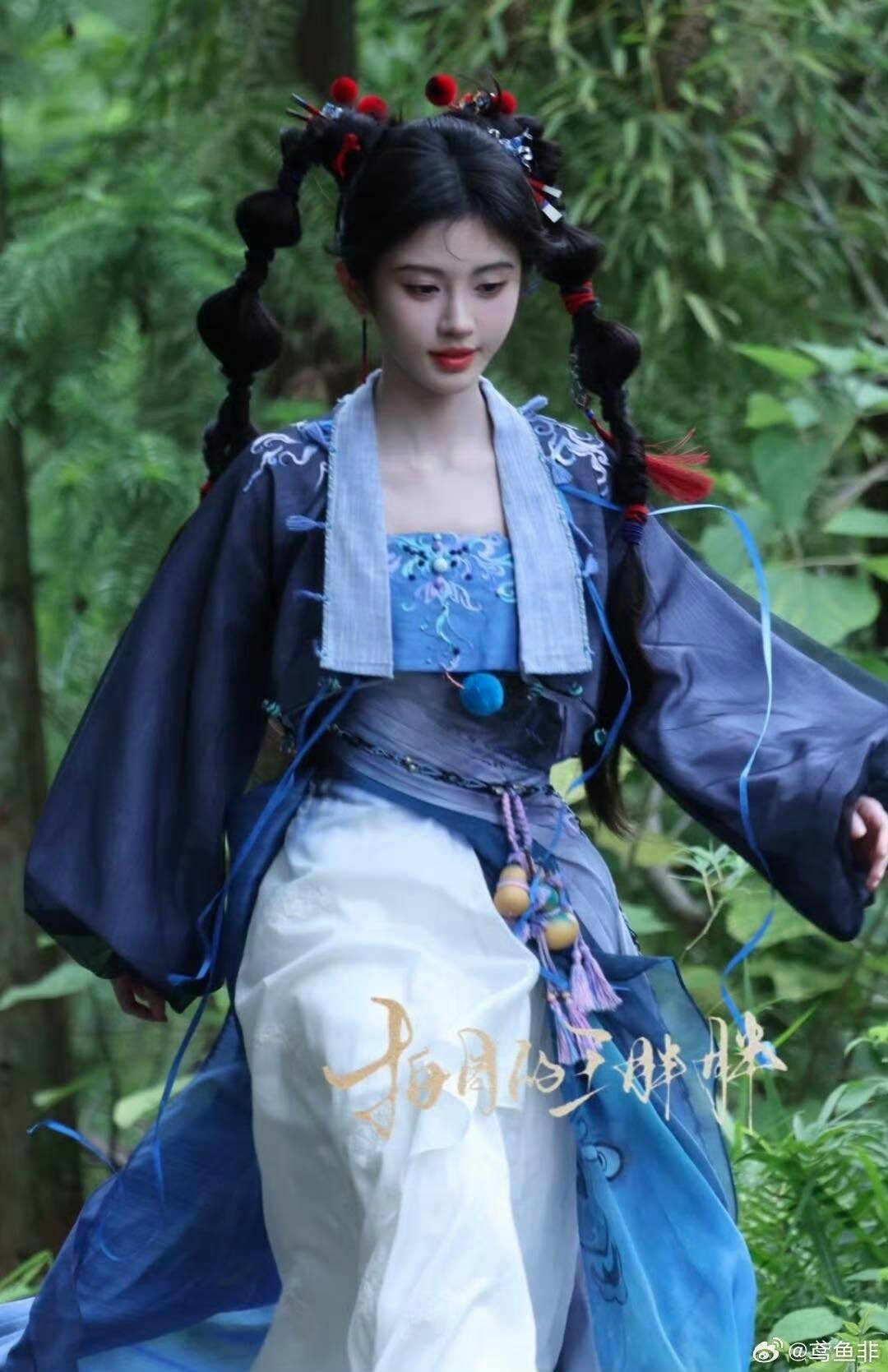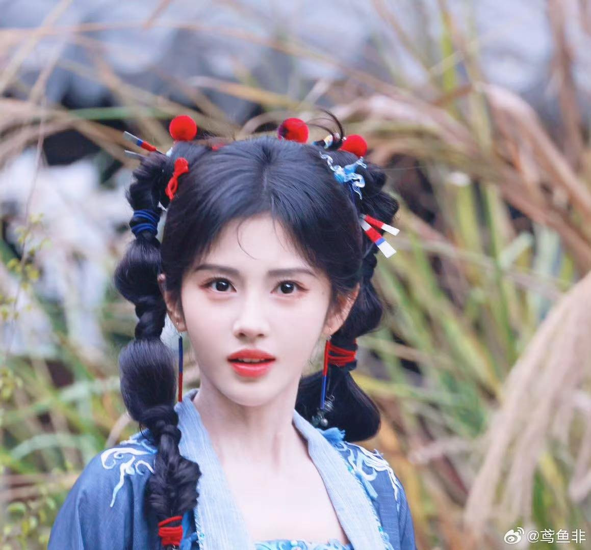 Thật may là điều này không xảy đến với Cúc Tịnh Y. Ngay khi nhìn thấy cô xuất hiện trên phim trường với trang phục mang màu xanh chủ đạo, tóc buộc hai bên và đính vô số quả cầu nhỏ màu đỏ, mọi người đã tíu tít khen “mỹ nữ 4000 năm” cực xinh với phong cách này.
