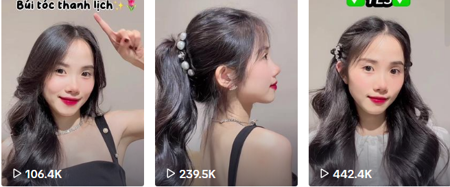 Không thể không kể đến 2 video nổi trội nhất về cách tết tóc hai bên không bị xẹp và cách búi tóc che mái “bò liếm” lên top xu hướng của cô, hiện sở hữu lần lượt 12,5 triệu và 8,1 triệu lượt xem.