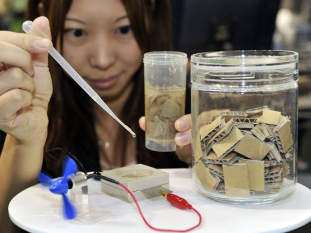 Trong khuôn khổ sự kiện liên quan tới môi trường được tổ chức tại thủ đô Tokyo (Nhật Bản) trong tuần qua, Sony nhờ các tình nguyện viên nhỏ tuổi trộn giấy vụn với một số loại enzym, lắc đều hỗn hợp và đợi vài phút để chứng kiến chất lỏng chuyển hóa thành nguồn điện, đủ để vận hành một chiếc quạt nhỏ.
