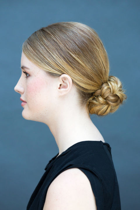 Tết tóc lại rồi cuộn thành búi. Bạn chỉ mất vài giây là đã tết xong phần tóc.