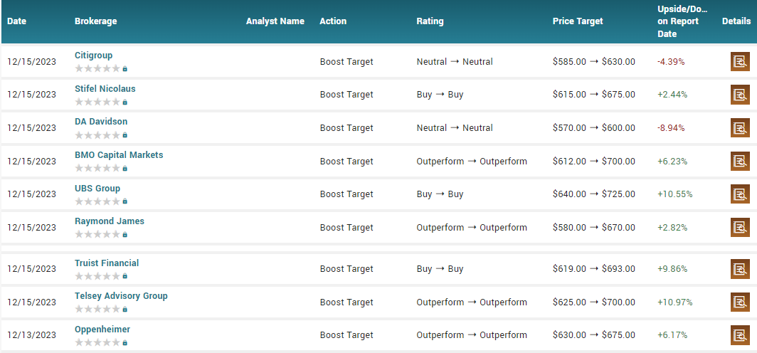 Truist Financial đã nâng giá mục tiêu đối với cổ phiếu của Costco từ 619 USD lên 693 USD và duy trì xếp hạng “mua” đối với cổ phiếu trong một báo cáo nghiên cứu vào ngày 15/12. Công ty báo cáo mức tăng trưởng doanh số "vững chắc" tiếp tục được thúc đẩy bởi hàng tiêu dùng có tỷ suất lợi nhuận thấp hơn. Mặc dù vậy, mô hình định giá của Costco cho phép công ty duy trì tỷ suất lợi nhuận cao.