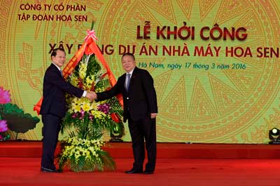 Phát biểu tại lễ khởi công, ông Lê Phước Vũ, Chủ tịch Tập đoàn Hoa Sen khẳng định: “Dự án Nhà máy Hoa Sen Hà Nam là một trong những dự án trọng điểm, nằm trong kế hoạch mở rộng sản xuất của Tập đoàn. Đây là một trong những chiến lược then chốt của Hoa Sen nhằm khẳng định vị thế ở thị trường nội địa, củng cố vững chắc thị trường ở các tỉnh phía Nam, tiến nhanh và mạnh ra thị trường khu vực miền Bắc”- ông Vũ nói.