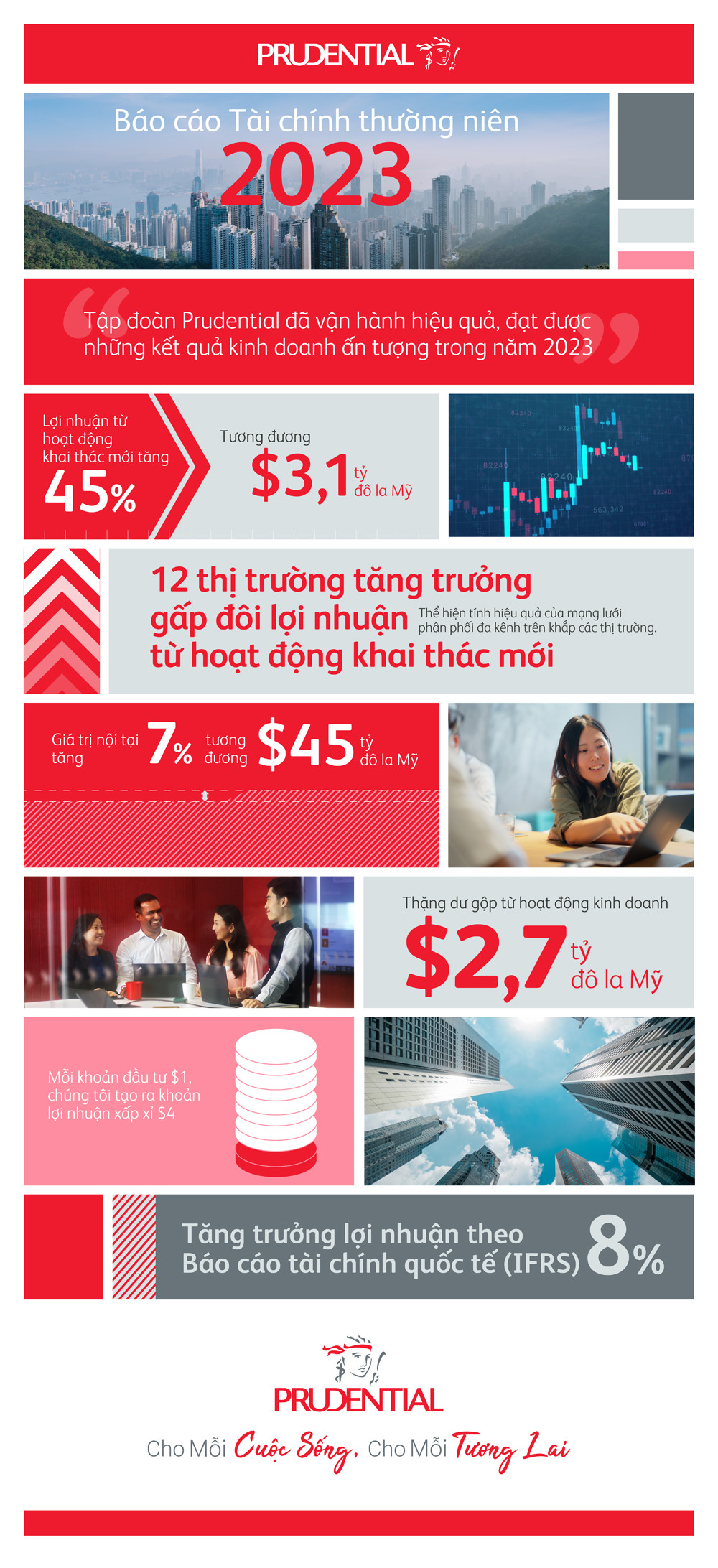 Ông Anil Wadhwani – Tổng Giám Đốc Tập đoàn Prudential cho biết: "Đây là một loạt những kết quả kinh doanh rất ấn tượng khi vận hành trong bối cảnh kinh tế vĩ mô đầy thách thức, với lợi nhuận từ hoạt động khai thác mớităng 45% nhờ sự tập trung và các nỗ lực không ngừng nghỉ tại thị trường châu Á và châu Phi. Các kết quả này không chỉ minh chứng cho hoạt động hiệu quả của chúng tôi trên cả kênh đại lý và kênh hợp tác kinh doanh qua ngân hàng, mà còn khẳng định vị thế dẫn đầu của Prudential tại nhiều thị trường trọng điểm.”