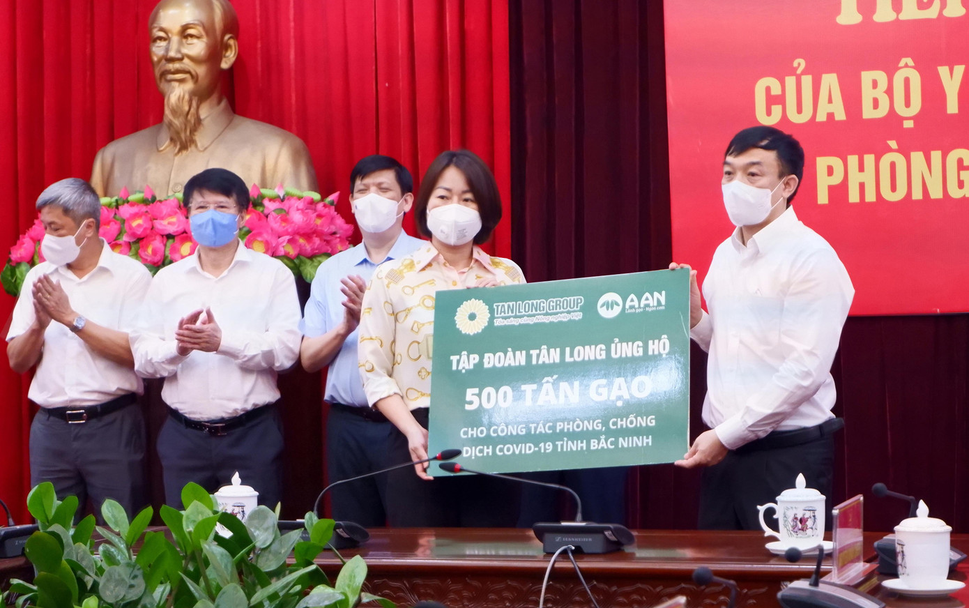 Ngày 24/5, Tập đoàn Tân Long tiếp tục trao tặng tỉnh Bắc Giang và Bắc Ninh 1.000 tấn gạo và 5 tỷ đồng để cùng góp sức nơi dịch bệnh cam go.